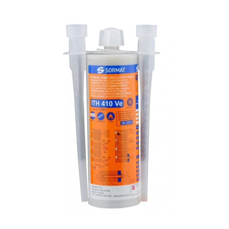 Инжекционные массы ITH, относящиеся к ассортименту химических креплений «Sormat», являются высококачественными, изделиями со слабым запахом, и не имеют в своем составе стирола. Инжекционные массы ITH являются решениями для креплений не только в бетоне, но и в кирпичной кладке, пористых и полых конструкциях, а также под водой. Инжекционная масса Sormat ITH-Ve — это быстроотвердевающий двух-компонентный состав, без стирола на основе винилэстера для монтажа шпилек, болтов и арматуры в просверленные отверстия. Одобрение включает соединения с использованием арматурных стержней, монтаж в потолок, применение под водой и на различную глубину установки. Высокая химическая стойкость, низкое содержание ЛОС, сертифицировано NSF для контакта с питьевой водой, прошло испытания LEED, термостойкость -40 °C - +120 °C. Надежный способ крепления в сплошные и пористые материалы.