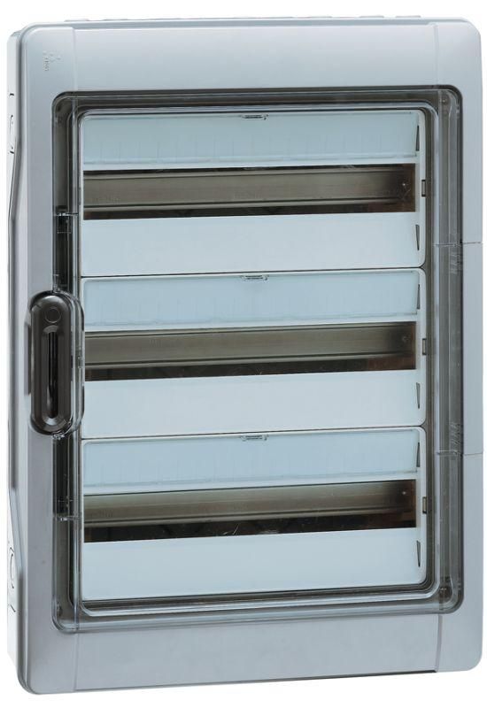 Бокс ОП Plexo3 IP65 36м(3х12) N+PE Leg 601983 – щитовое оборудование для модульных устройств. Габариты: 622 х 340 х 89 мм. Изготовлен из высокопрочного пластика (IP65). С прозрачной крышкой, без монтажной панели, серого цвета. Предусмотрен монтаж 36 модулей на дин-рейку (по 12 модулей в 3 ряда). Поставщик: Legrand.