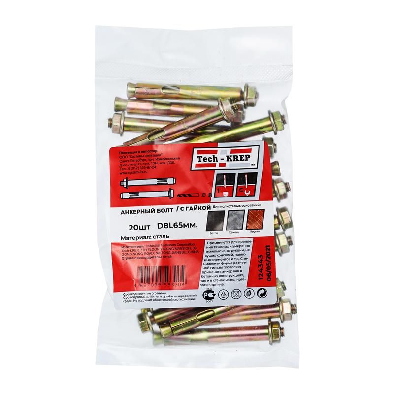 Читать все статьиБолт анкерный с гайкой 8х65 (уп.20шт) Tech-KREP 124343