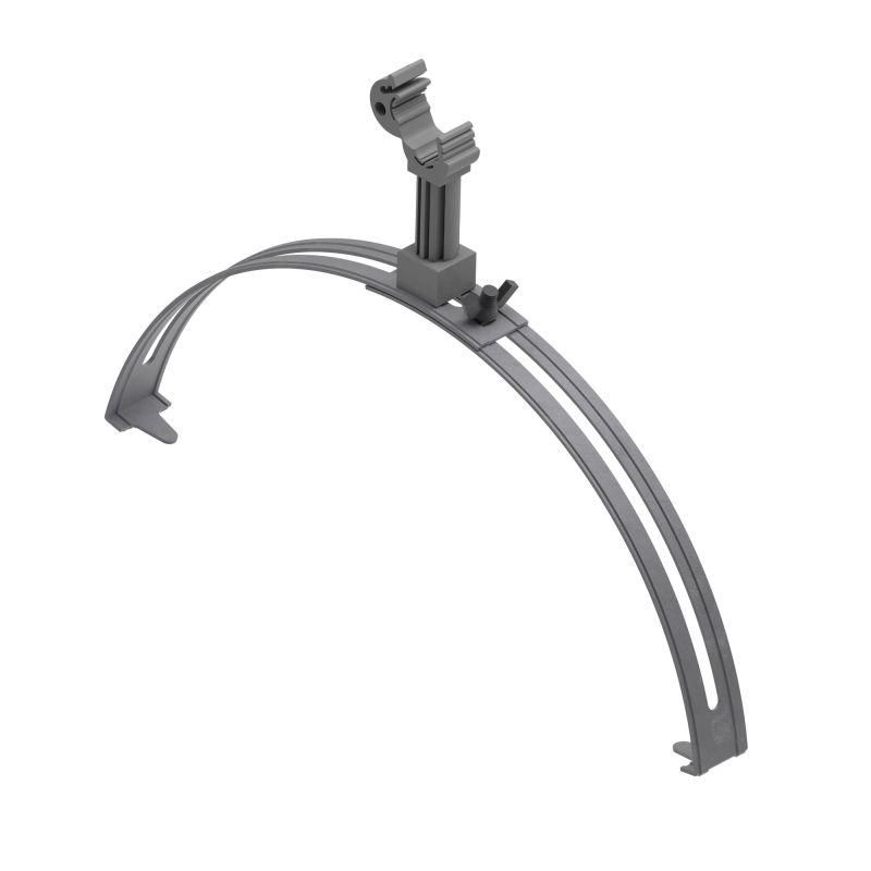 Регулируемый коньковый зажим с пластиковым держателем применяется для крепления молниеприемной сетки на круглом коньке кровли. Проводник фиксируется путем защелкивания. Диапазон зажима - 125-205 мм. Материал - горячеоцинкованная сталь.