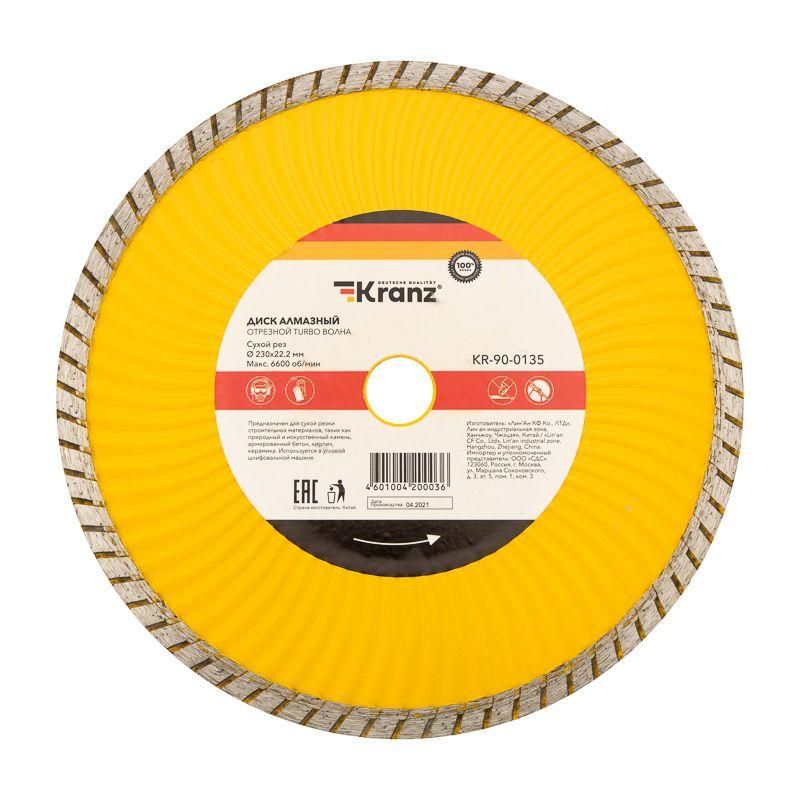 Читать все статьиДиск отрезной алмазный Turbo волна 230х22.2х2.4х10мм Kranz KR-90-0135