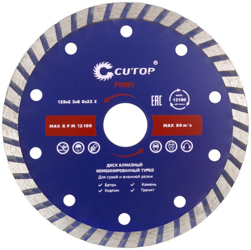 Читать все статьиДиск отрезной алмазный комбинированный Турбо Profi 125х23х8.0х22.2мм Cutop 61-12523