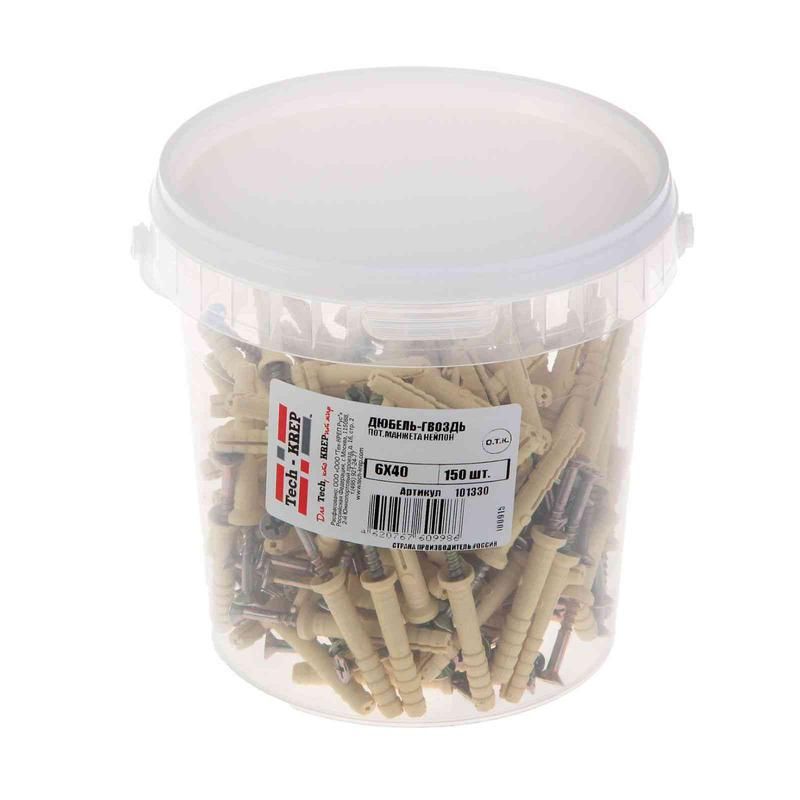 Читать все статьиДюбель-гвоздь 6х40 пот. манжета (нейлон) (уп.150шт) Tech-KREP 101330
