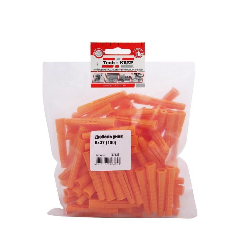 Читать все статьиДюбель универсальный 6х37 без бортика (уп.100шт) Tech-KREP 124450