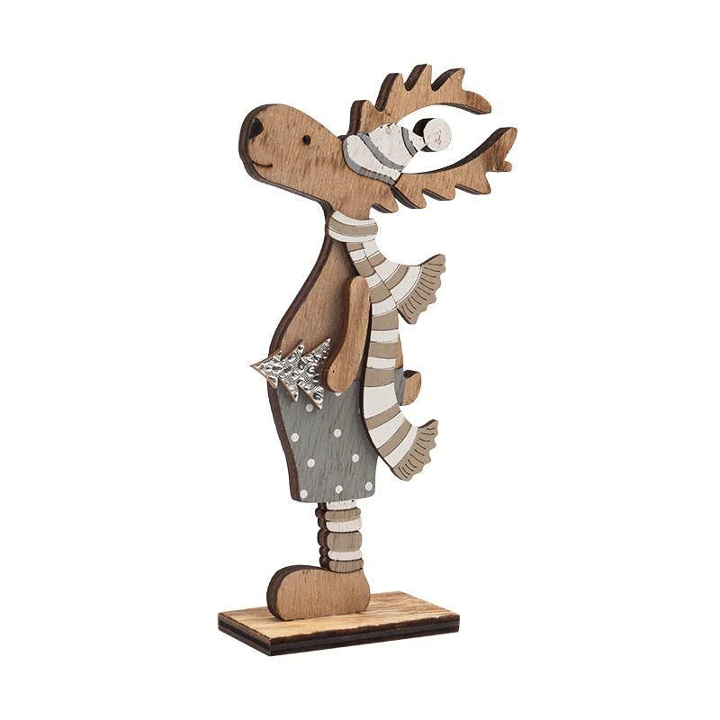 Деревянная фигурка «Рождественский Олень» 10,5х 4х 18 см представляет серию интерьерного декора с забавными персонажами, словно сошедшими со страниц доброй волшебной сказки. Фигурка оленя выполнена из природной древесины и окрашена безопасным составом, не вызывающим аллергии. Улыбающийся олень держит в руке маленькую металлическую новогоднюю ель — композиция вызывает ассоциации с рождественскими праздниками. Устойчивая подставка позволяет разместить интерьерную фигурку на любой ровной поверхности.