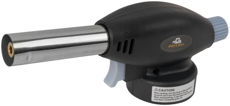 Газовая горелка c пьезоподжигом MOS в виде пистолета применяется для розжига костра, разогрева трубопроводов, нагрева предметов, прогрева замерзшего водопровода или замков, обжига дерева при брашировании, удаления краски, плавления и карамелизации продуктов питания, выполнения различных ремонтных работ. Используется со стандартным цанговым газовым баллоном. Сопло, форсунка-распылитель и винт регулировочного барабана изготовлены из медного сплава. Ствол горелки сделан из алюминиевого сплава. Материал корпуса — термостойкий пластик. Горелка оснащена регулятором интенсивности пламени. Температура пламени до 1300 °С. Пьезоподжиг подает электрический разряд и моментально поджигает газ.