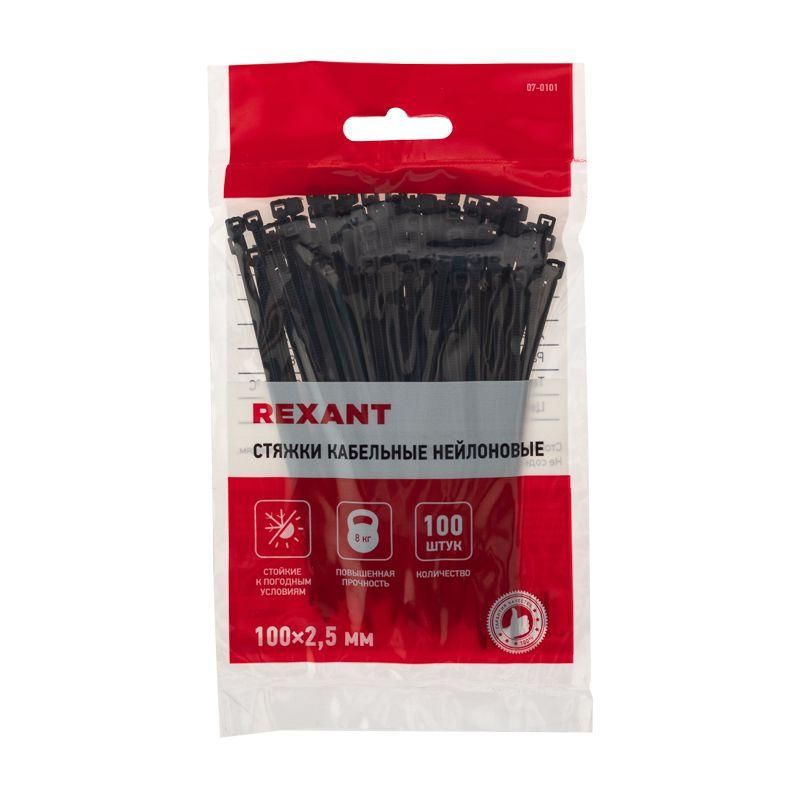Читать все статьиХомут кабельный 2.5х100 нейл. черн. (уп.100шт) Rexant 07-0101
