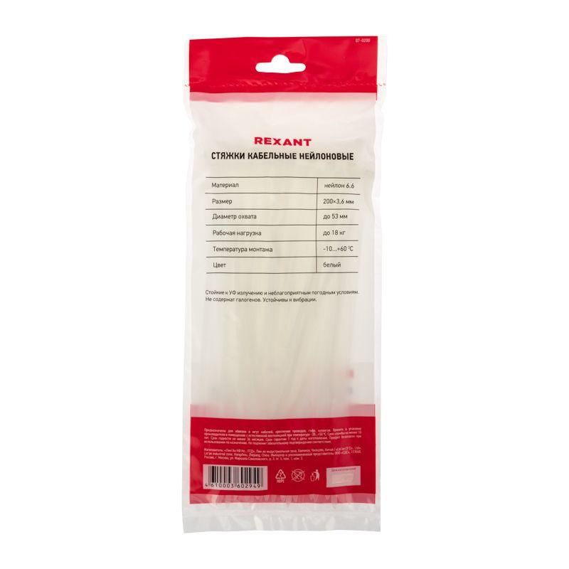 Читать все статьиХомут кабельный 3.6х200 нейл. бел. (уп.100шт) Rexant 07-0200