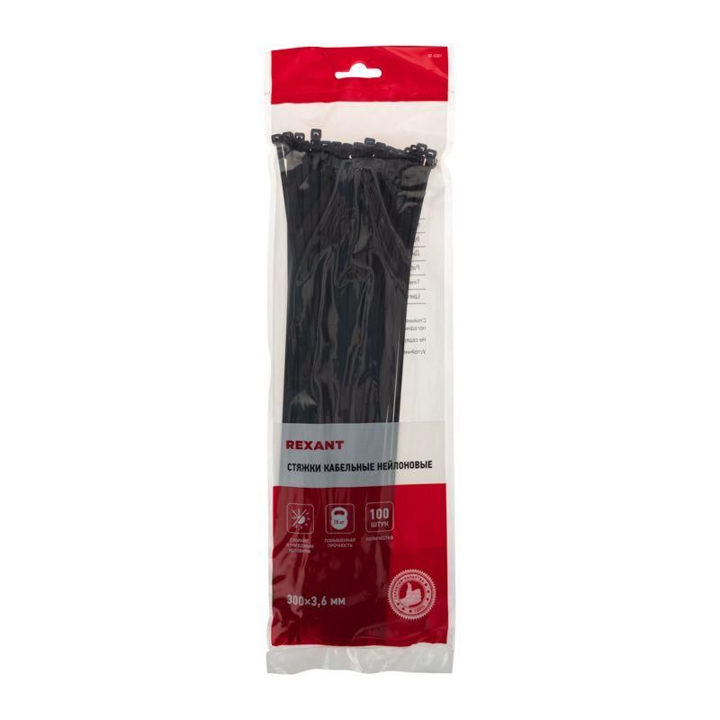 Читать все статьиХомут кабельный 3.6х300 нейл. черн. (уп.100шт) Rexant 07-0301