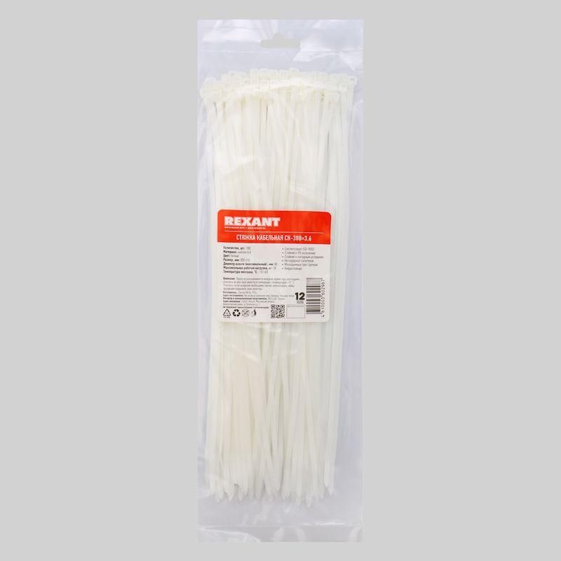 Читать все статьиХомут кабельный 3.6х300 петлевой нейлон бел. (уп.100шт) Rexant 07-0300