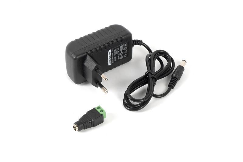 12В, 2А. Напряжение питающей сети 110-245 В переменного тока. Защита выхода от КЗ. Пластиковый корпус IP20. Подключение питания - сетевая вилка, подключение нагрузки - штекер 5,5х2,1 мм, переходник на клеммы в комплекте. Габаритные размеры - 25х75х75 мм.