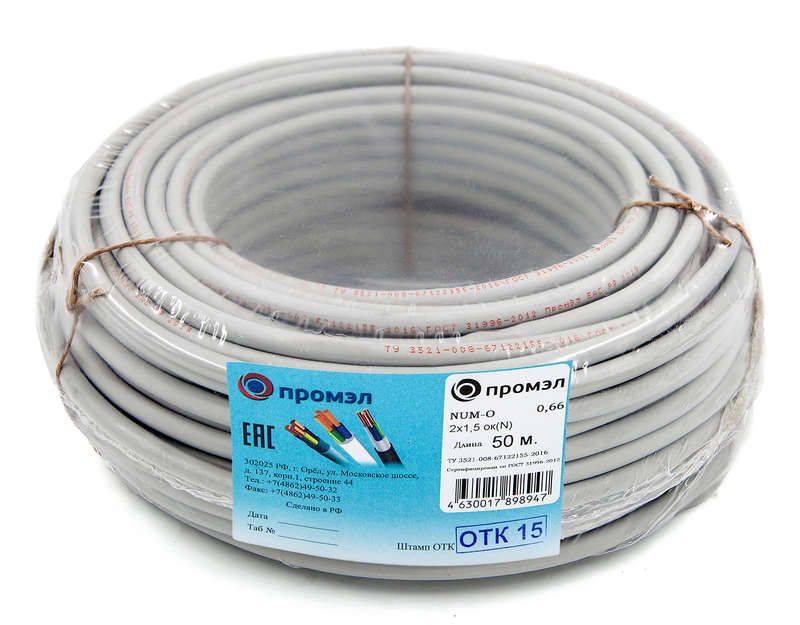 Читать все статьиКабель NUM-O 2х1.5 (бухта 50м) (шт) Промэл 13321310