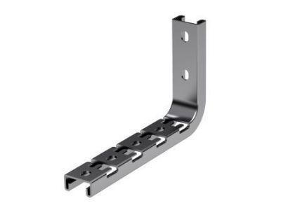 Легкая потолочная консоль для проволочного лотка шириной 100 мм. Предназначена для безвинтового монтажа кабельной трассы на основе системы проволочных лотков "F5 Combitech" с максимально допустимой нагрузкой 100 кг. Крепление осуществляется к стене. Высота консоли - 140 мм. Толщина стали - 2 мм.