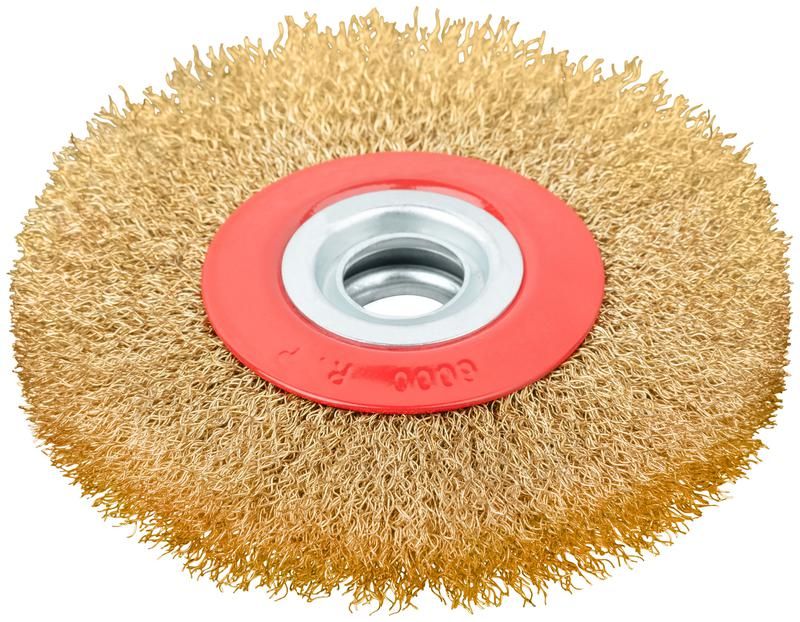 Читать все статьиКорщетка-колесо стальная латунированная волнистая проволока 125мм FIT 39012