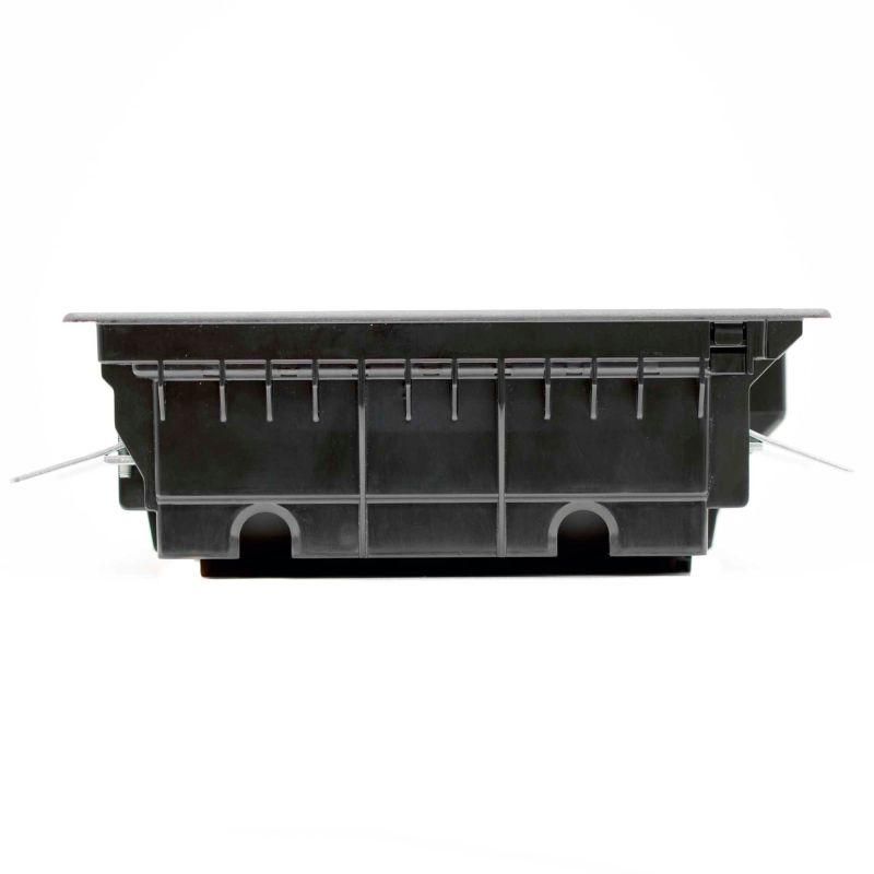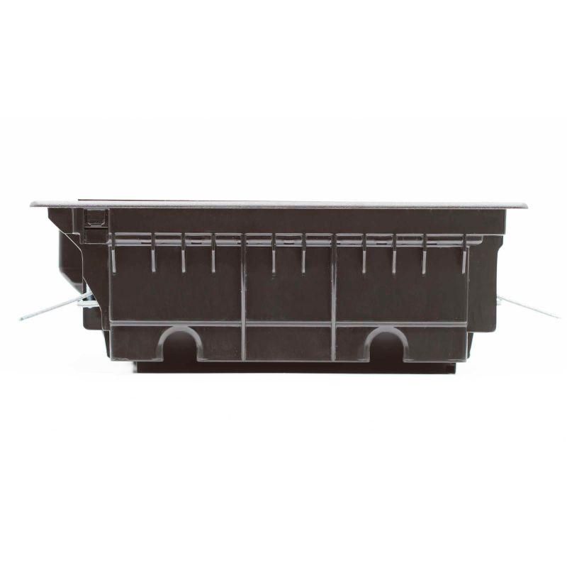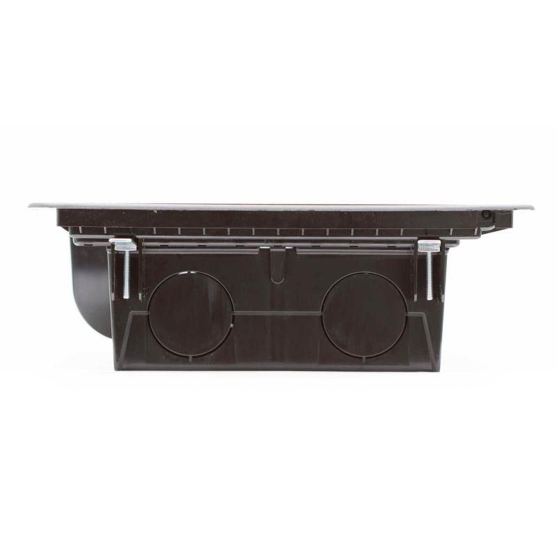 Назначение: организация рабочего места в открытом интерьере, под столами, трибунами и т.д., в качестве распределительной коробки. Устанавливается в фальшполах с толщиной плит от 20 до 40 мм, отверстие в полу 345х255 мм, закрепляется невыпадающими фиксаторами. Характеристики: глубина от уровня пола - 92 мм, высота над уровнем пола (толщина рамки): 3 мм, ширина рамки (ободка по периметру) сверху – 20 мм, снизу – 12 мм, крышка лючка утоплена на 7,5 мм для напольного покрытия, крышка со стальным листом, нагрузка - 450 кг, открывается на угол 110°; монтаж ЭУИ "Avanti","Brava", "Viva", "45х45 мм" с 2 сторон; трубы вводятся диаметром до 40 мм по 2 шт. с 2 сторон. Комплект поставки указан в "Инструкции по сборке и установке лючка с неизменяемой глубиной на 12 мод"). Цвет - черный, RAL 9005.