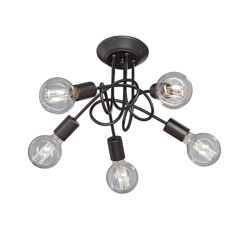 Люстра потолочная Vitaluce V3727-1/5PL на пять ламп под цоколь Е27 в стиле лофт будет прекрасным дополнением для любого интерьера. Люстра на потолок может украсить не только вашу гостиную, столовую или спальню, он также идеально впишется в лофт пространства, кафе, рестораны и другие общественный места. Потолочная люстра изготовлена из металлического каркаса. Цвет арматуры - черный матовый. Возможна установка светодиодных, энергосберегающих, филаментных или ламп накаливания. Площадь освещения при использовании ламп накаливания составляет 15 м2. При использовании светодиодной лампы мощностью до 8 Вт площадь освещения может быть увеличена до 25 м2. Люстра имеет возможность крепления на планку, что делает ее универсальной для монтажа к любым видам потолков. Обращаем ваше внимание, лампы в комплект не входят. Параметры изделия: высота - 24 см, диаметр - 44 см. Размеры потолочной чаши: высота - 3 см, диаметр - 15 см. Прилагается инструкция по сборке и установке.