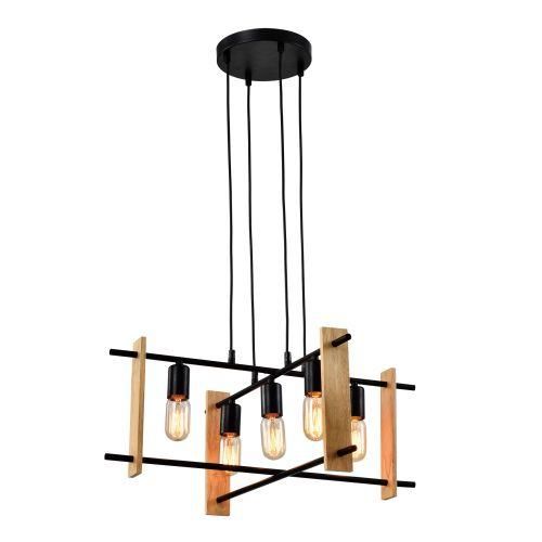Подвесная каркасная люстра с открытыми источниками света - Rivoli Elizabeth (арт. 5107-305). Люстра на тросах под 5 ламп Е27 40 Вт. Высоту подвеса люстры можно отрегулировать при монтаже люстры на потолок, укоротив тросы. Основание люстры круглое, металлическое, чёрного цвета. Накладной способ установки позволяет быстро разместить данную дизайнерскую люстру на любом потолке. Реечный каркасный корпус подвесной дизайнерской люстры окрашен гальваническим способом в два цвета – чёрный и светлое дерево. Коллекцию Rivoli Elizabeth в стиле лофт-кантри дополняют подвесные светильники под 1 лампу (арт. 5107-201) и под 3 лампы (арт. 5107-203).