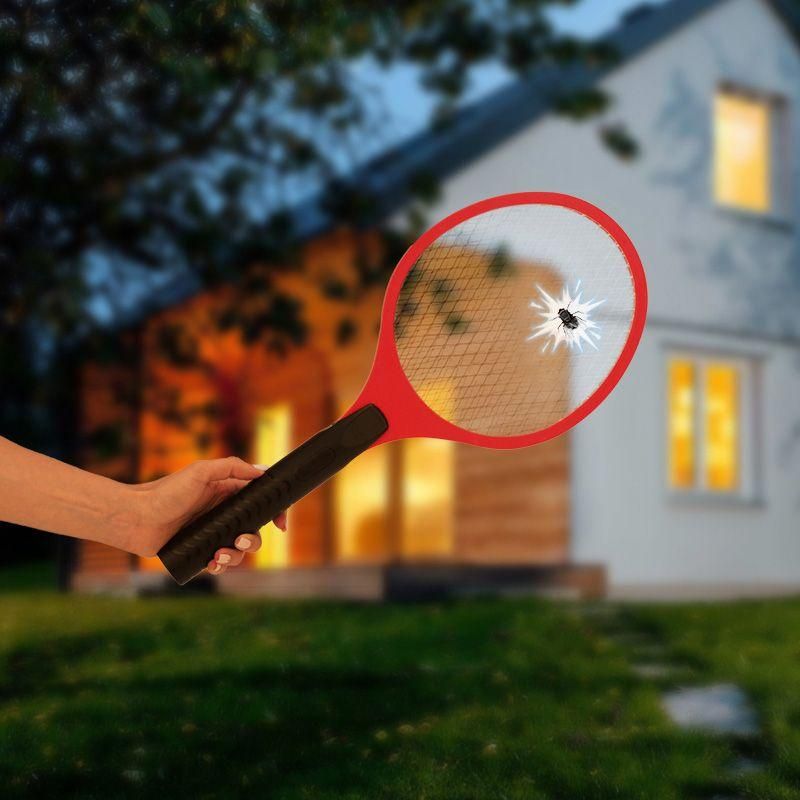 Электрическая мухобойка REXANT размером 49х21,5х3,2 см выполнена в виде ракетки для бадминтона. При нажатии кнопки, расположенной на рукоятке, во внутренней сетке возникает малый разряд тока (800 В). В результате насекомое при контакте с сеткой получает смертельный удар. Такой способ уничтожения комаров не оставляет следов на стенах и потолке. Электромухобойка подходит для использования дома и на загородном участке. Незаменима в туристических походах: мгновенно избавляет от насекомых в палатке. Экологичная мухобойка безопасна для людей и домашних животных. Однако следует ограничить доступ детей к прибору. Слабый разряд тока безвреден, но может напугать малыша. Изделие работает от 2-х пальчиковых батареек типа AA/LR6 (в комплект не входят). Вес: 187 гр.