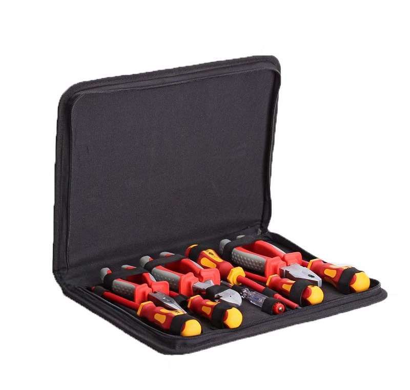 • Для работы под напряжением до 1000 В • Состав набора: • диэлектрические пассатижи СТАНДАРТ 180 мм • диэлектрические бокорезы усиленные СТАНДАРТ 180 мм • диэлектрические длинногубцы СТАНДАРТ 160 мм • диэлектрическая отвертка: шлиц 2.5х75 • диэлектрическая отвертка: шлиц 4х100 • диэлектрическая отвертка: шлиц 5.5х125 • диэлектрическая отвертка: PH1x80 • диэлектрическая отвертка: PH2x100 • отвертка-индикатор • Упаковка: тканевый водозащитный кофр • Габариты упаковки: 340х260х40 мм • Вес набора: 1.50 кг