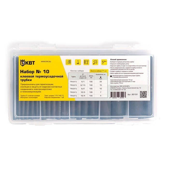 Читать все статьиНабор клеевой термоусадочной трубки №10 КВТ 85191