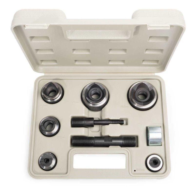 • Состав набора: • 6 круглых перфоформ для пробивки (мм): 20.5/ 22.5/28.3/34.6/43.0/48.5 • резьбовая шпилька М10/20 • резьбовая шпилька М20/20 • опорная втулка • Толщина пробиваемого листа зависит от используемого оборудования • Пробивка отверстий под дюймовые трубы: 1/2", 3/4", 1", 1 1/4", 1 1/2" • Перфоформы представлены парой «матрица – пуансон» • Круглые перфоформы МПО (КВТ) до 28.3 мм включительно имеют специальную конструкцию – они разрезают кольцевой отход на две части во избежание застревания высечки внутри перфоформы • Упаковка: пластиковый кейс • Совместимость с прессами: ППО-60, ППО-115, ПГПО-60, ПГПО-60А, ПГПО-115, ПГРО-60А, ПГРОп-60А, ПГРОу-60А, ПГАПО-60А