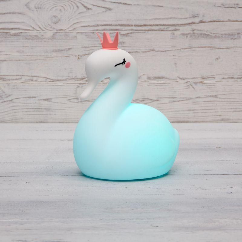 Силиконовый ночник «Лебедь» выполнен из мягкого материала, приятного на ощупь. Забавный персонаж придется по душе каждому ребенку, станет его лучшим другом, который поможет быстро и крепко заснуть. Ночник светится теплым белым цветом, плавно меняет оттенки RGB-диодов или светится одним цветом из 256 вариантов. Изделие не нагревается, не имеет неприятного запаха, острых углов и опасных деталей. Ночник заряжается через USB-порт, одного объема аккумулятора хватает на 9-10 часов.