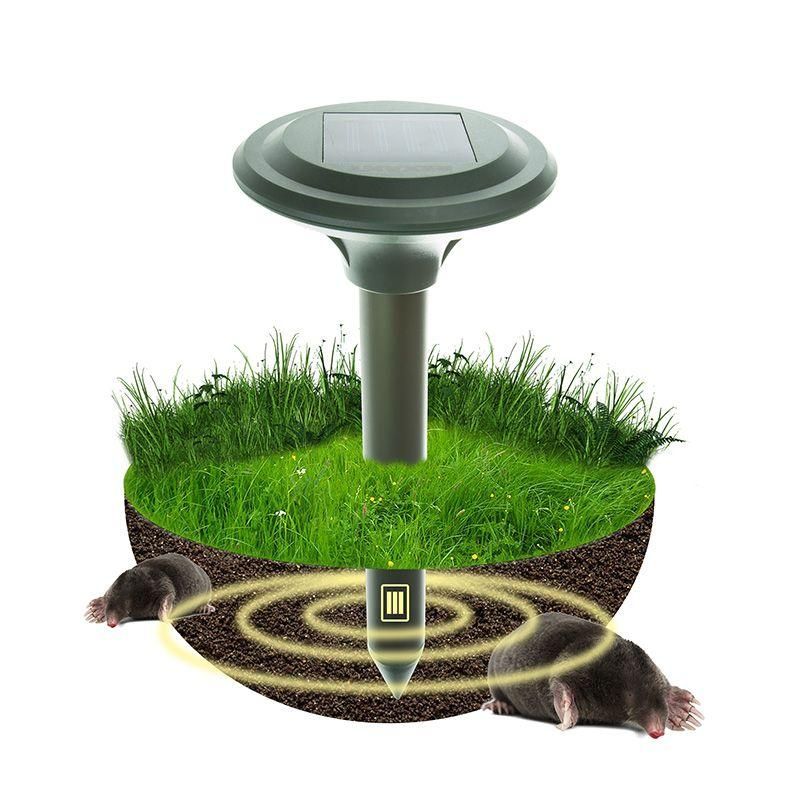 Ультразвуковой отпугиватель кротов REXANT предназначен для избавления от земляных вредителей на дачном участке и защиты урожая. Оснащен солнечной батареей. Отпугиватель работает за счет высокочастотных звуковых волн, которые не слышны для человека, но очень неприятны для кротов. Грызуны, находящиеся в области действия устройства, становятся беспокойными и уходят, не причиняя вреда растениям. Изделие безопасно для людей и домашних животных, не содержит химикатов. Радиус действия составляет до 30 метров. Однако на охватываемую площадь влияет тип почвы, фундамент построек и камни.