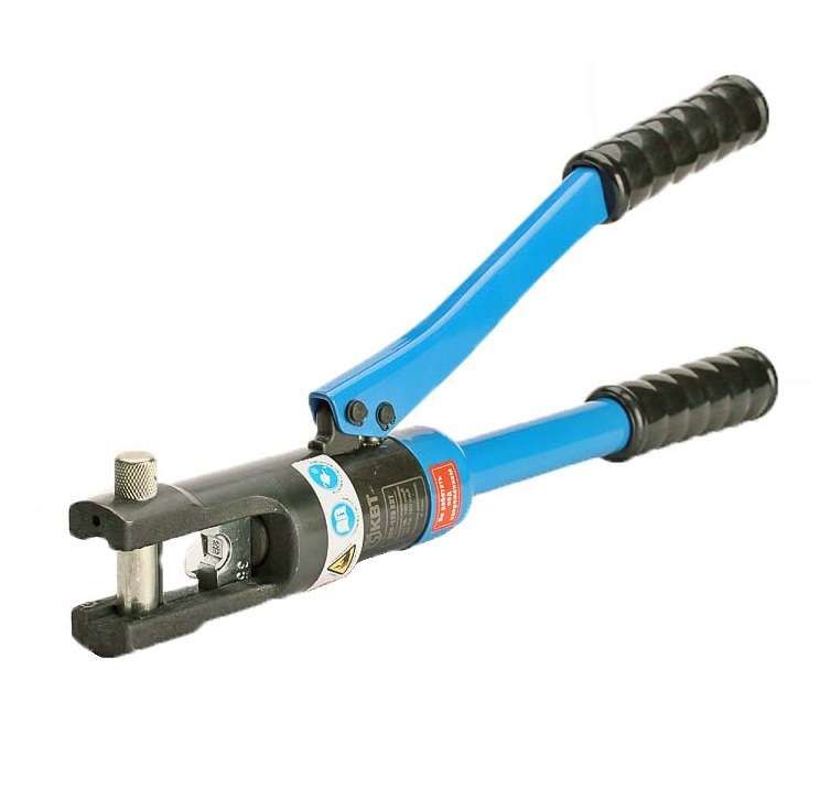 • Предназначены для опрессовки медных и алюминиевых неизолированных трубчатых наконечников • В комплекте: • ручной гидравлический пресс ПГР-120 • набор из 8 сменных матриц • ремкомплект (уплотнительные кольца) • прочный пластиковый кейс • Диапазон сечений: • кабельные наконечники 10–120 мм2 • Двухскоростная помпа с механизмом быстрого хода поршня • Клапан ручного сброса давления • Усиленная рабочая голова • Максимальное усилие: 8 т • Вес комплекта/инструмента: 4.30/2.70 кг • Длина: 410 мм • Габариты кейса: 420х180х85 мм