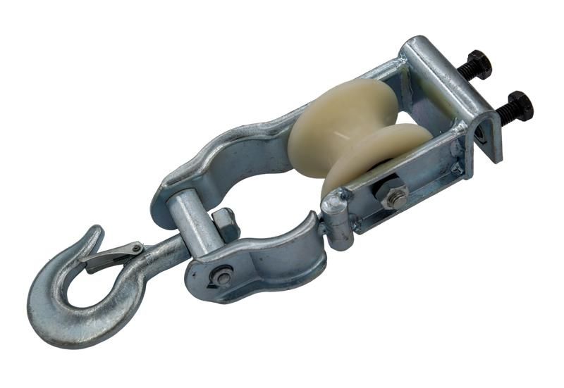 Раскаточный ролик предназачен с целью протяжки проводов ВЛ и ВОЛС по опорам, устанавливается на каждой опоре и обеспечивает протяжку при угле поворота до 30 градусов. Установка ролика возможна как при помощи подвеса - крюка, так и опорно - при помощи скобы. Остов ролика выполнен из алюминиевого сплава, ролик выполнен из нейлона. В верхней части ролика установлен крюк с подпружиненным зевом, исключающим падение изделия с высоты и обеспечивающим установку подвесного типа. В нижней части остова расположена скоба с двумя болтами, скоба позволяет установить ролик на профиле металлоконструкций, раствор скобы не более 10мм - обеспечивает установку опорного типа. Размещение провода/пучка проводников производится путем откидывания щеки на боковой части остова. Щека имеет откидной механизм, фиксация щеки производится путем использования винта-барашка Максимальная нагрузка статичная, кг - 500 Диаметр ручья ролика, мм - 50 Внешний диаметр ролика, мм - 80