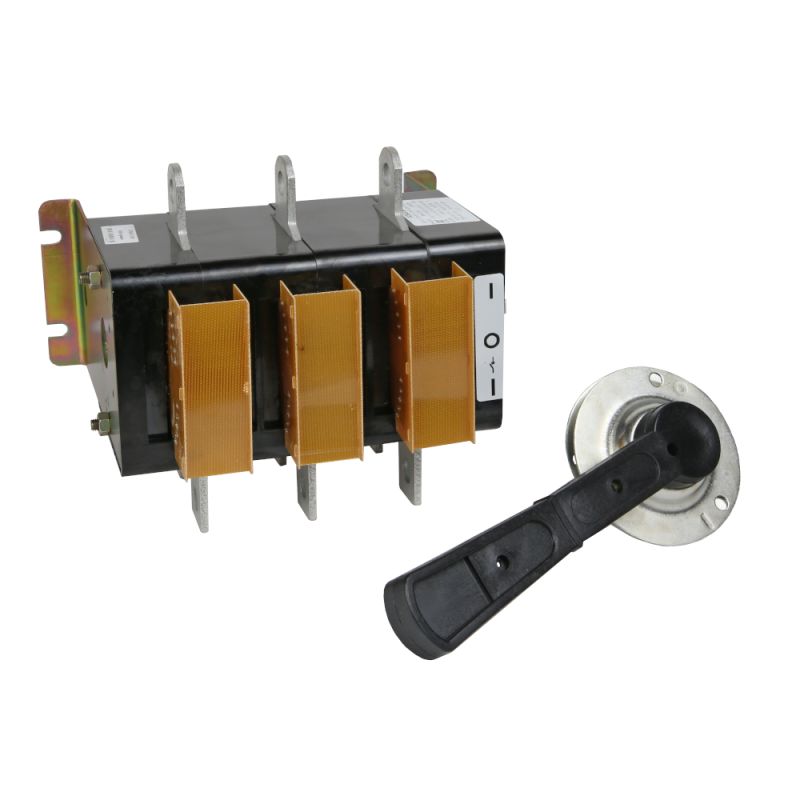 Выключатель-разъединитель 3 полюсный на номинальный ток 100 А, в котором установлена съемная рукоятка.