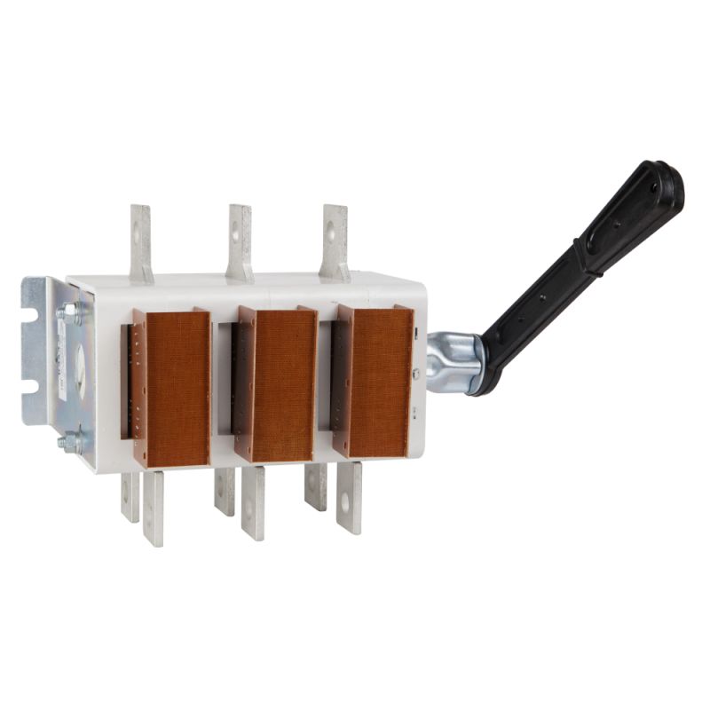 Выключатель-разъединитель 3 полюсный на номинальный ток 630 А, в котором установлена несъемная рукоятка.