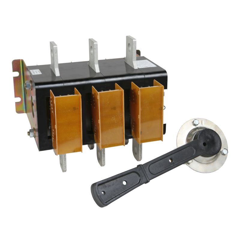 Выключатель-разъединитель 3 полюсный на номинальный ток 630 А, в котором установлена съемная рукоятка.