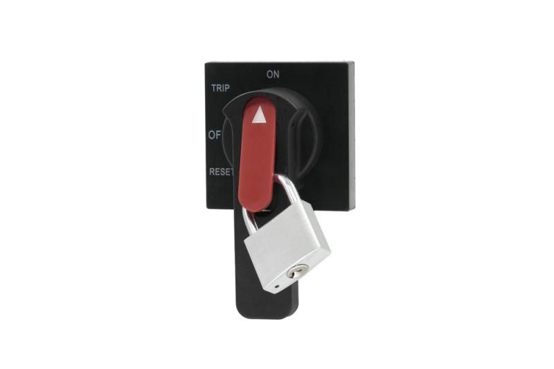 Ручка поворотная на дверь шкафа РП-335; состоит из ручки, удлинительной оси и поворотной рукоятки; предназначена для ручного дистанционного переключения (включения и отключения) автоматического выключателя серии ВА-330А без открытия двери шкафа.