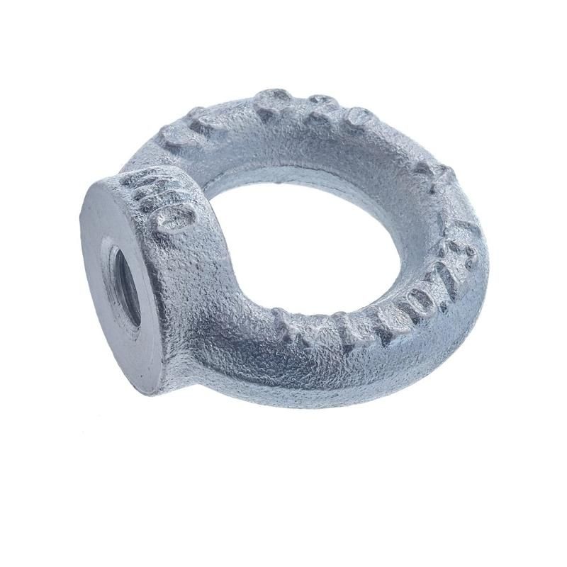Рым-гайка DIN 582 визуально представляет собой кольцо с небольшой литой, круглой площадкой снизу. По центру площадки имеется отверстие с нарезанной резьбой определенного диаметра. Применяется в основном для перемещения грузов или для построения растяжек.