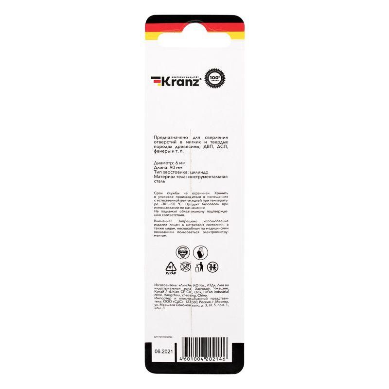 Читать все статьиСверло по дереву 6х90мм цилиндрический хвостовик Kranz KR-91-0735