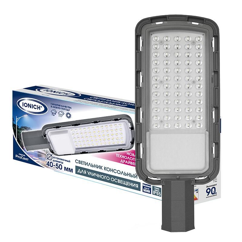 Читать все статьиСветильник светодиодный консольный линзованный ДКУ 50Вт 5000К IP65 IONICH 2149