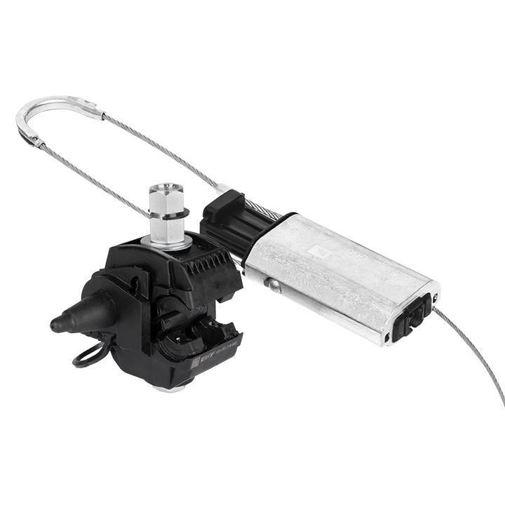 Зажим анкерный типа pa-2000 Rpi предназначен для анкерного крепления изолированного провода СИП-3 к натяжным изолирующим подвескам опор ВЛЗ 6-20 кВ. Оснащен тросом из нержавеющей стали. В трос запрессован проводник для снятия электрического потенциала с провода и отвода на корпус зажима. Зажим устойчив к ультрафиолетовому и солнечному излучению, высоким и низким температурам, коррозии и агрессивным атмосферным воздействиям. Для монтажа троса уравнивания потенциала в комплект входит ответвительный прокалывающий зажим.
