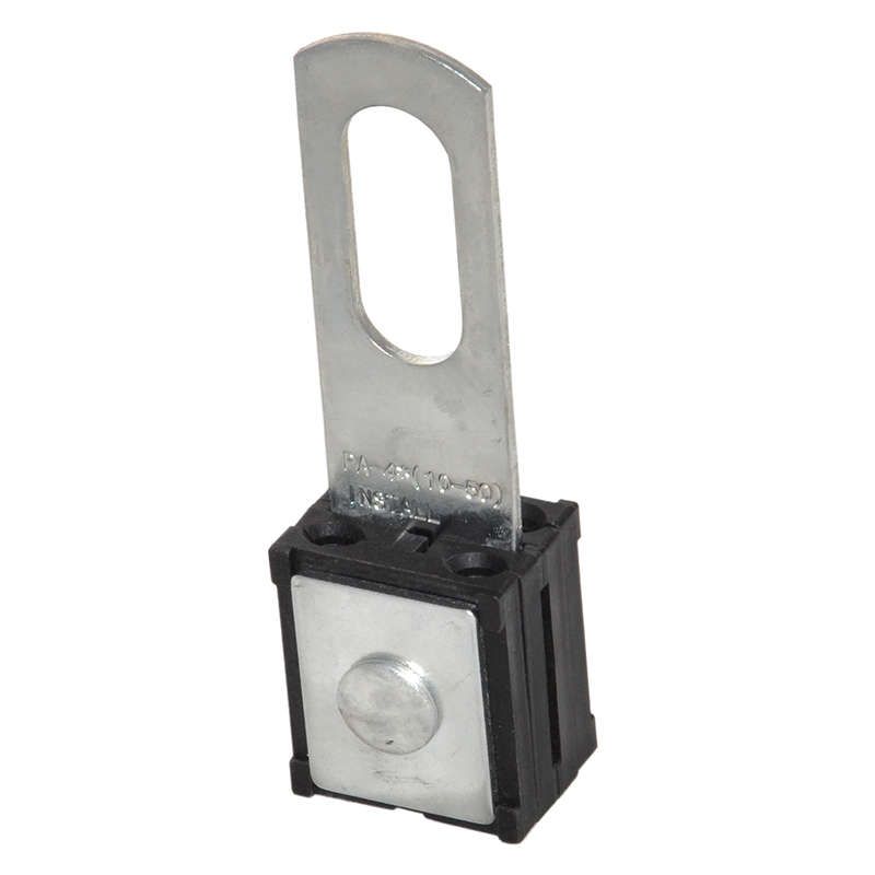 Зажим анкерный PA-4х(10-50) предназначен для натяжного или поддерживающего крепления провода СИП-4 на магистрали и ответвлениях от магистрали, а также на ответвлениях к вводам в здания и сооружения. Поддерживающее крепление - при повороте плашек на 90°. Металлические части зажима изготовлены из стали с последующей оцинковкой, вставки изготовлены из пластмассы, армированной стекловолокном. Зажим устойчив к УФ излучению, повышенной и пониженной температуре, к тепловому и световому воздействию солнечной радиации. Продукция имеет сертификат соответствия. Продукция соответствует требованиям СТО ПАО "Россети". Обозначение по СТО 34.01-2.2-007 ПАО "Россети": ЗУС-4х25