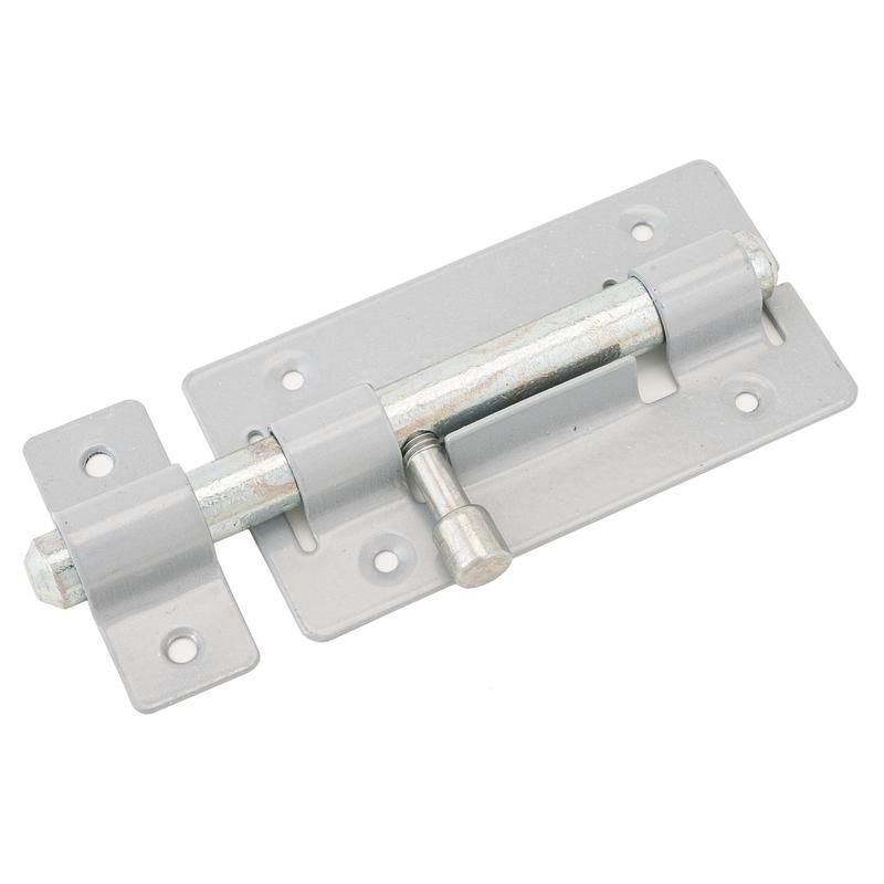 Засов Киров Секрет ЗД-01серый металлик круглый (20), , Засов накладной для деревянных и металлических дверей. Материал - сталь, полимерное покрытие. Габариты корпуса - 115х63 мм, 4 крепежных отверстия. Круглый ригель диаметром 13 мм с вылетом 30 мм. В комплекте ответная планка.